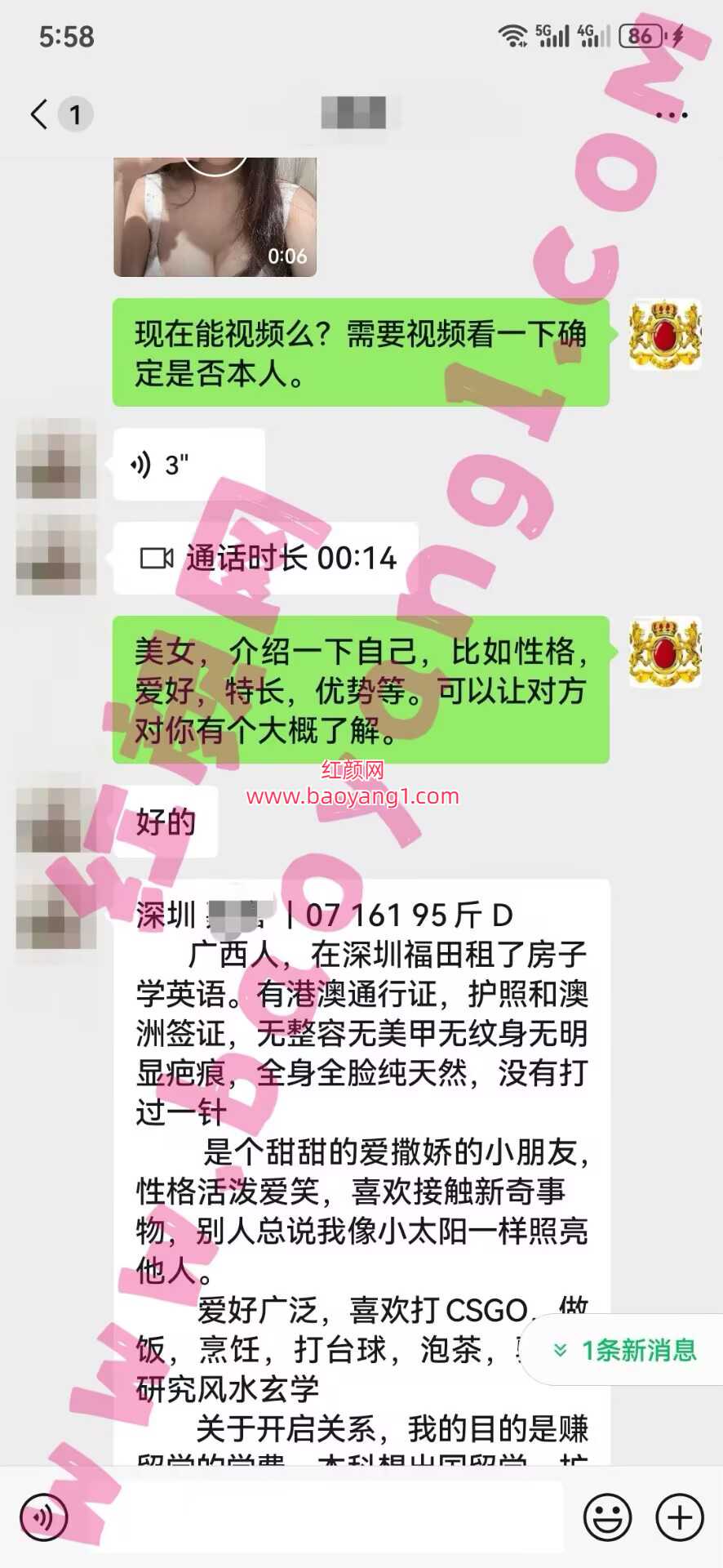 1.jpg 2.jpg 极品推荐:广西女孩,07年的,目前在深圳学英语,女生想出国留学。五官精致,甜美清纯女生。胸D杯,童颜大胸萝莉。PS:朋友推荐过来的,百分百靠谱。已通过客服视频验证,确保真实。可以去外地,有意的会员速联系吧。